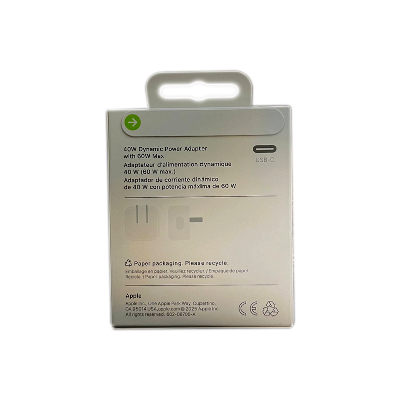 شارژر 2 پین دیواری اپل 40 وات - Apple 40W Dynamic Power Adapter (های کپی) کوچک، سبک و قابل حمل با پین تاشو میباشد. با توان ثابت 40 وات امکان شارژ گوشی های آیفون جدید با پورت USB-C، تبلت شما و سایر دستگاه های اپل (آیپد، ایرپاد و مک بوک) را با سرعت بالا فراهم میکند. در مواقع لازم امکان افزایش توان خروجی تا 60 وات را به شما میدهد. این ویژگی یک مزیت خاص برای افرادی که به دنبال شارژ سریع تلفن خود سر کار هستند یا مدام در رفت و آمد هستند میباشد. ابعاد کوچک آن قرار دادن آن را در کیف، جیب یا کوله راحت تر میکند. دارای 2 پین جهت اتصال به پریز است و یک پورت ارتباطی Type C بر روی بدنه آن تعبیه شده است. برای ساخت این محصول در کنار طراحی و کارایی به ایمنی نیز توجه شده است و از دستگاه شما در برابر مشکلات احتمالی محافظت میکند.