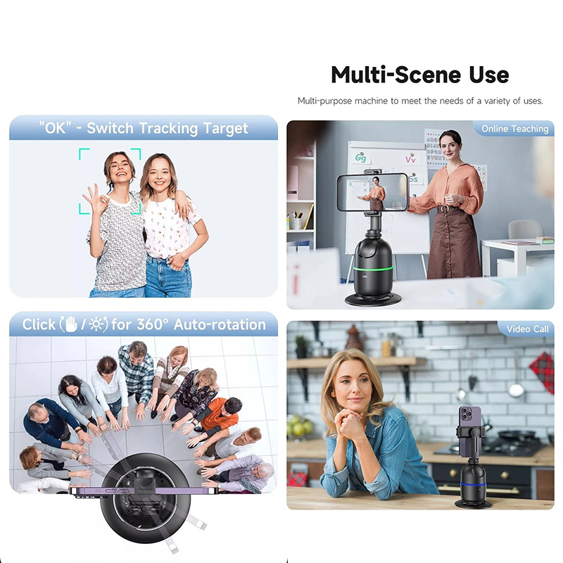 مدل P03 با قابلیت تشخیص چهره و چرخش 360 درجه، مثل یک فیلم بردار شخصی عمل میکند. اگر در حال ضبط ویدیوی آموزشی هستین و نمیخواهید هر لحظه بایستید و زاویه دوربین را تنظیم کنید. پایه P03 با ردیابی چهره و چرخش خودکار، مانند یک همراه بی صدا همه ی لحظات شما را ثبت میکند. بدون پیچیدگی و دکمه های اضافی تنها کافیست گوشیتان را روی آن قرار بدهید و روشنش کنید و حرکت کنید، اجازه بدهید تا خود پایه شما را دنبال کند. برای مدرس هایی که آنلاین تدریس میکنند یا دانش آموزهایی که پروژه تصویری دارند، این پایه یه ابزار حرفه ای هست که با داشتن آن فقط روی محتوا تمرکز میکنید و دیگر نگران کادر دوربین نیستید. این محصول برای کسانی ساخته شده که به ظاهر و کارایی هم زمان اهمیت میدهند.