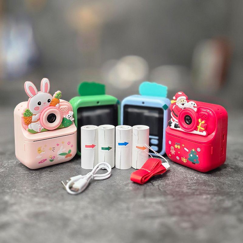 این دوربین کودکان دارای عملکرد چاپ فوری است که صحنه‌های رنگی را تنها 1 ثانیه بعد از فشار دادن دکمه شاتر ثبت کرده و بلافاصله به صورت رنگی قرمز، نارنجی، آبی و سبز چاپ می‌کند. این دوربین چاپگر مخصوص کودکان دارای 4 عدد رول به رنگ های قرمز، نارنجی، سبز و آبی هست. هر رنگ رول چاپ مخصوص به خود را ارائه میدهد. اگر داخل دوربین رول حرارتی با برچسب قرمز استفاده کنید عکس مدنظر شما شما به رنگ قرمز پرینت میشود. اگر تمایل به چاپ سیاه و سفید دارین، از کاغذ حرارتی ساده استفاده کنید. با رول کاغذ چاپگر، دوربین‌های فوری می‌توانند تعداد زیادی عکس چاپ کنند. این دوربین عکاسی تصاویر خیره‌کننده 48 مگاپیکسلی و ویدیوها را با وضوح fhd و hd با رنگ‌های غنی و جزئیات واضح ضبط می‌کند. کودکان میتوانند از خود عکس سلفی بگیرند و در کمترین زمان ممکن چاپ کنند. آن را به انتخابی عالی برای سفر، دورهمی‌های خانوادگی و استفاده روزمره تبدیل می‌کند. کودکان می‌توانند تصاویر را با مداد رنگی مورد علاقه خود رنگ‌آمیزی کنند که به تقویت تخیل و مهارت‌های عملی کودکان کمک می‌کند، اسباب‌بازی و هدیه‌ای عالی است.