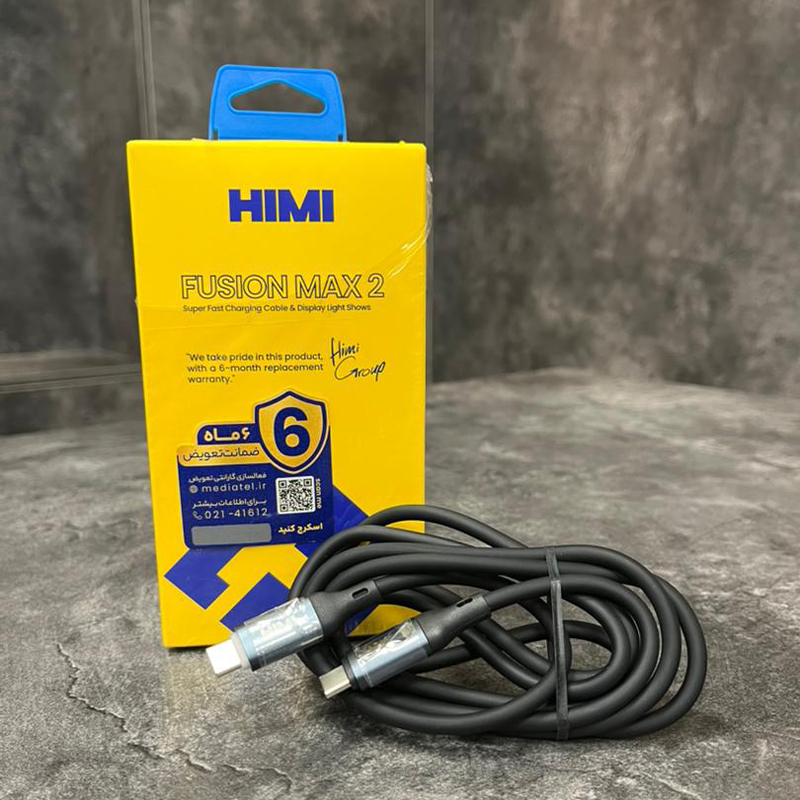 کابل Type-C به Type-C هیمی مدل Fusion Max2 با طول 1.5 متر و جنس سیلیکون و آلیاژ آلومینیوم میباشد. مقاوم در برابر گره خوردگی و پارگی است و در مقایسه با سایر کابل ها متفاوت بوده و عمری طولانی دارد. با حداکثر توان خروجی 100 وات و ظرفیت 5 آمپر است. مجهز به نمایشگر دیجیتال هوشمند بوده و سرعت شارژ قابل مشاهده میباشد. قابلیت شارژ سریع دارد و برای انتقال اطلاعات نیز قابل استفاده است.