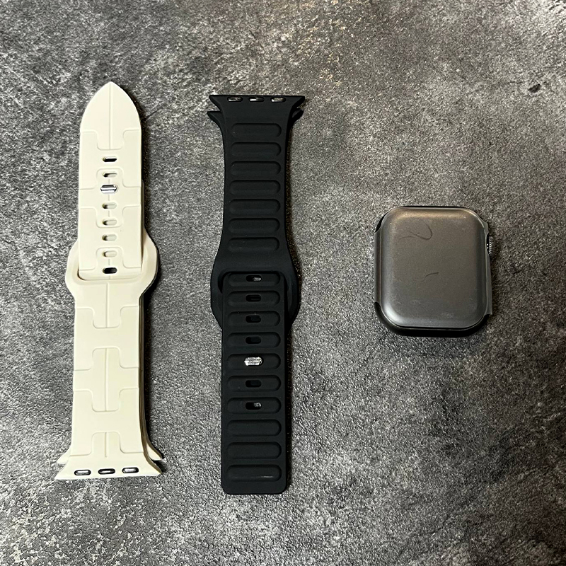 - رنگ بدنه تیتانیوم بوده و دارای دو عدد بند سیلیکونی به رنگ های مشکی و طوسی است.