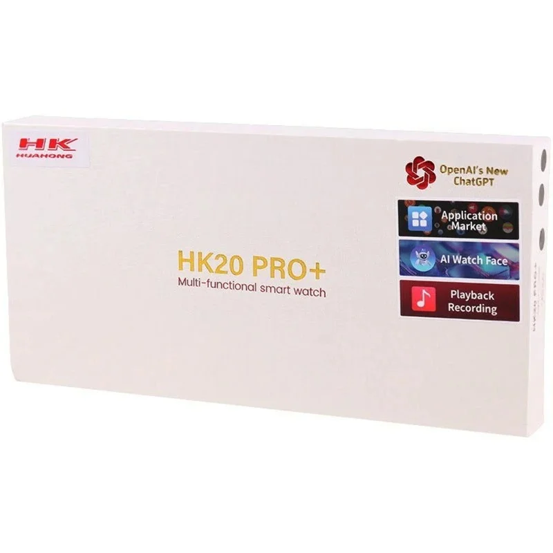 ساعت هوشمند مدل HK20 Pro Plus دارای صفحه ای به اندازه 2.02 اینچ و از نوع AMOLED با پشتیبانی از صفحه نمایش همیشه روشن میباشد. بدنه ی ساعت HK20 Pro Plus از جنس آلیاژ روی ساخته شده و مجهز به دکمه چرخشی (مجیک باتن) میباشد. این ساعت امکان نمایش اعلانات فارسی و منوی فارسی را دارد. با اندروید 5 به بالا و IOS10 به بالا سازگاری دارد و با دو ساعت شارژ این ساعت حدود 3 تا 5 روز کار میکند. دارای بلوتوث نسخه 5.2 بوده و شما با اتصال ساعت به گوشی در هنگام تماس ورودی، می توانید با ساعت به تماس خود پاسخ بدهید. پشتبانی از چت جی پی تی از دیگر امکانات این ساعت است. ساعت را به اپلیکیشن متصل کرده و سپس در قسمت مربوطه در ساعت سوالات خود را از این هوش مصنوعی بپرسید. برای اینکار باید یک پیام صوتی در قسمت مربوطه ضبط کرده و منتظر پاسخ بمانید. از دیگر قابلیت های این ساعت می توان به هشدار بی تحرکی و قدم شمار و حالت های ورزشی شامل دوچرخه سواری، پیاده روی، فوتبال، بسکتبال اشاره کرد. جستجوی تلفن همراه، شاتر دوربین گوشی، قطب نما، ماشین حساب، نمایش آب و هوا امکانات دیگری هستند که در اختیار شما قرار می گیرد.