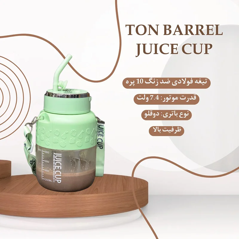 مخلوط کن قابل حمل TON BARREL JUICE CUP با طراحی جذاب و تیغه های فولادی ضد زنگ و ظرفیت بزرگ 800 میلی لیتر، به شما امکان میدهد تا در هر لحظه اسموتی، ابمیوه یا نوشیدنی مورد علاقتان را تهیه کنید. ظرفیت بالا برای نوشیدن در حین تمرین، طراوت مداوم را فراهم میکند. درب محکم و ضد نشت برای کاهش احتمال باز شدن تصادفی و آسودگی خاطر شما هنگام حمل آن در کیفتان طراحی شده است. درپوش پیچدار به شما این امکان را میدهد که با اطمینان آن را حمل کنید.